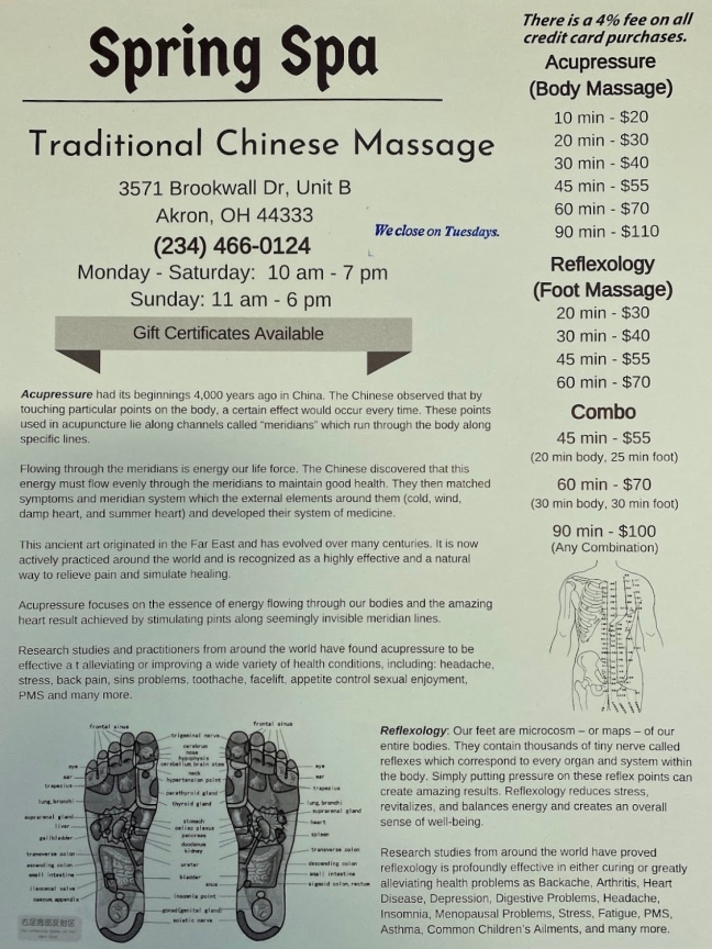 Welcome Posted on 05/12/201606/10/2023 by springspamontrose Hi, there! Welcome to Spring Spa, our traditional Chinese Massage spot. (Peter & Lynn – Our massage therapists) Our Flyer:
